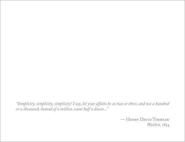“Simplicity, simplicity, simplicity! I say, let your affairs be as two or three, and not a hundred or a thousand; instead of a million count half a dozen…”